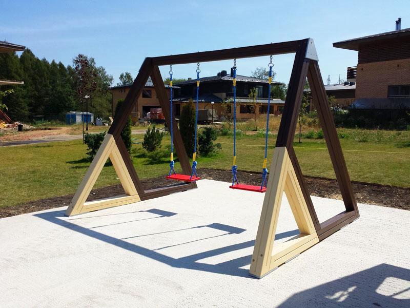 Наши уличные качели изготовлены своими руками, основа — клееный брус и металлические составляющие. Простота исполнения конструкции, ее узлов и соединений обеспечивает высокую надежность и долговечность. В зависимости от того, для каких целей будут использоваться качели, мы предложим навесное оборудование, которое может быть использовано как детьми, так и взрослыми.